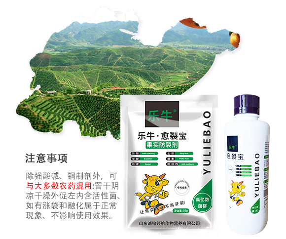 營養(yǎng)全面:樂牛·愈裂寶是我公司的專利產(chǎn)品成果,本品鰲合高億數(shù)菌群和作物所需的中微量元素,特別添加果實防裂因子,通過調(diào)節(jié)作物細胞內(nèi)鹽分濃度,達到細胞內(nèi)外滲透壓平衡,維持細胞膨脹壓力,作物細胞代謝率正常,減少裂果的發(fā)生率。