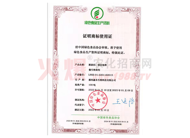 漯河鑫禾生物科技有限公司是農(nóng)業(yè)科技的殿堂,她沉積了待以開(kāi)發(fā)的物價(jià)科技財(cái)富,擁有大批的科技人才,公司目前擁有國(guó)家肥料登記證十一種,注冊(cè)商標(biāo)五個(gè),發(fā)明專利一項(xiàng)。