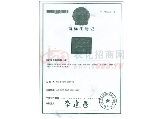 • 商標(biāo)注冊證商標(biāo)注冊證