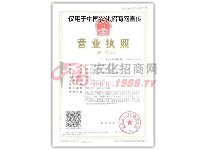 北京燕化永樂農(nóng)藥有限公司起源于1965年,2001年進行股份制改革后,成為一家集研發(fā)、生產(chǎn)和銷售于一體的高新技術企業(yè),也是國家發(fā)改委核準的定點農(nóng)藥企業(yè),致力于為種植者提供、、環(huán)保的植保解決方案。